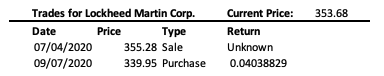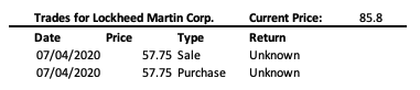 Raytheon Technologies Corp. managed to get a government deal once every quarter, just like the previous two companies. Furthermore, each deal that was made was worth an average of $4.4Bn. Unlike the other two companies Raytheon's stock grew by a significant amount in the questioned time period. However, there was only one trade made, and this congress member bought and sold within the same quarter so determining the return is not possible.